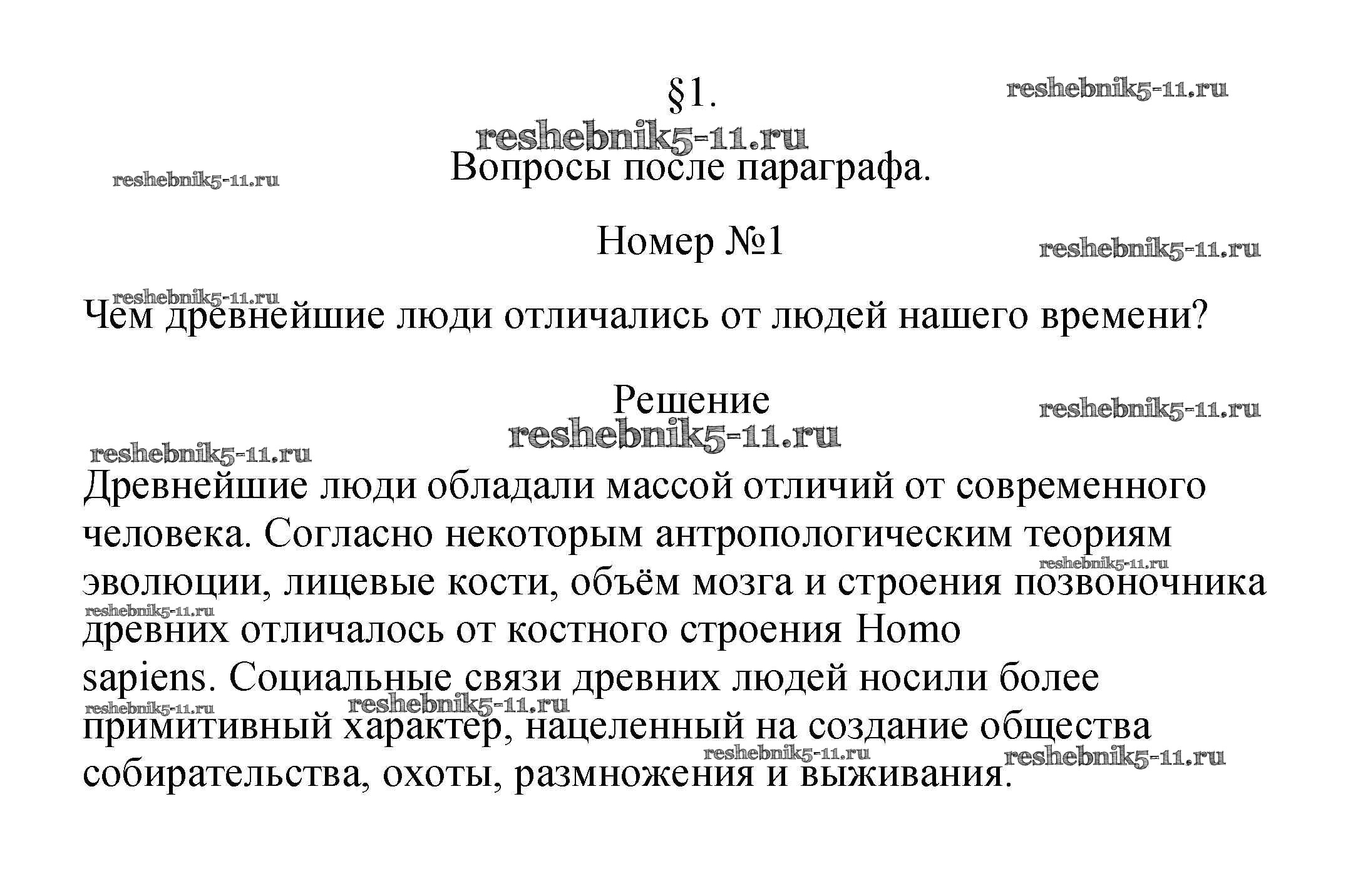 Готовая домашняя работа с ответами по Истории за 5 класс Вигасин, Годер, Свенцицкая Учебник Просвещение 2015 ФГОС - §1. Древнейшие люди 1