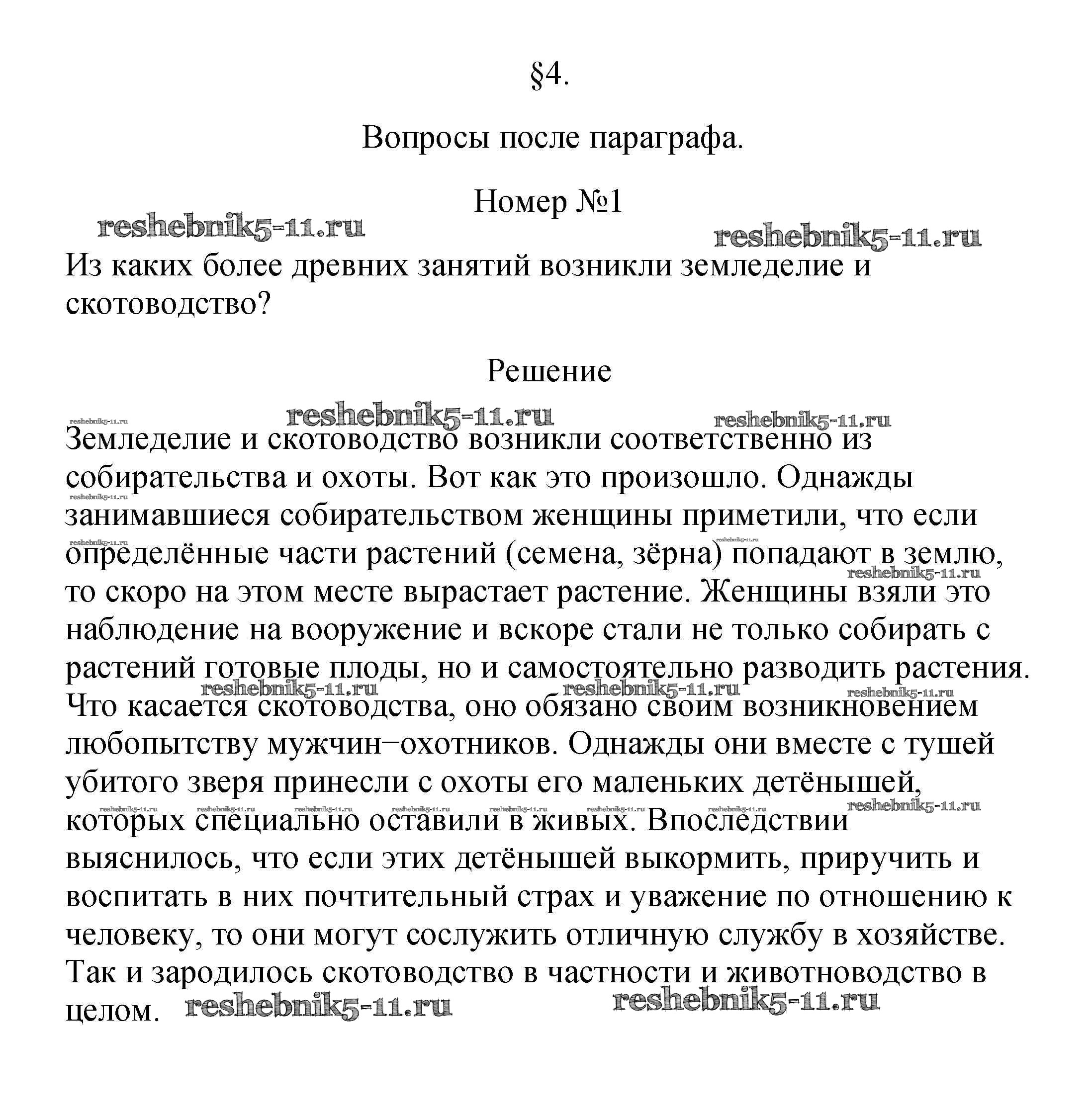 Готовая домашняя работа с ответами по Истории за 5 класс Вигасин, Годер, Свенцицкая Учебник Просвещение 2015 ФГОС - §4. Возникновение земледелия и скотоводства 1