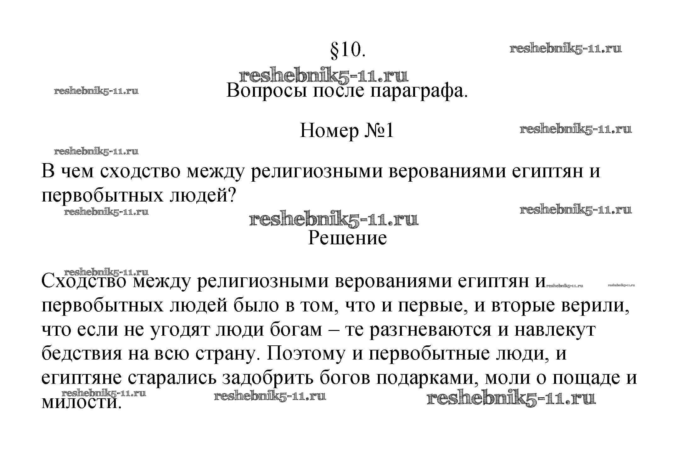 Готовая домашняя работа с ответами по Истории за 5 класс Вигасин, Годер, Свенцицкая Учебник Просвещение 2015 ФГОС - §10. Религия древних египтян 1