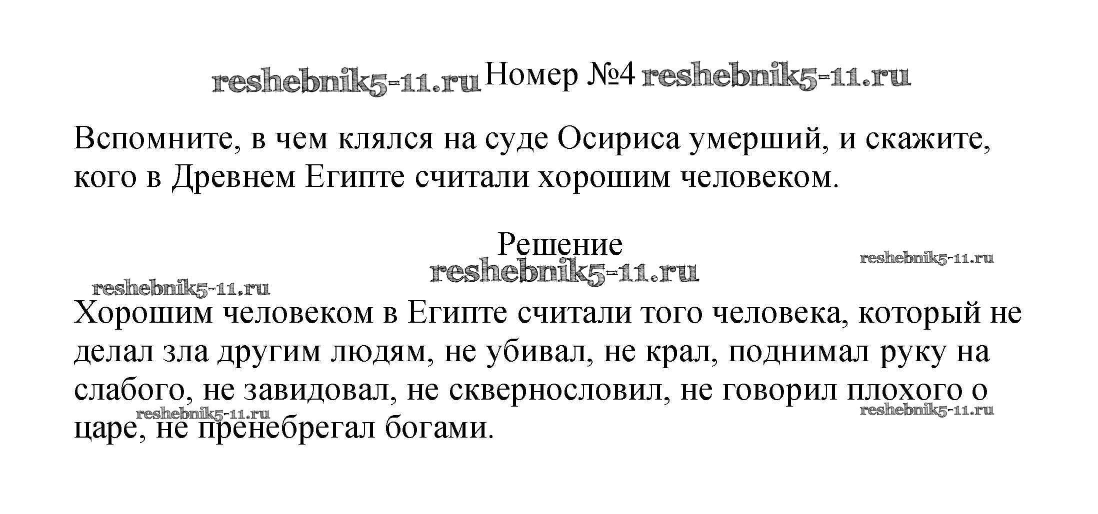 Готовая домашняя работа с ответами по Истории за 5 класс Вигасин, Годер, Свенцицкая Учебник Просвещение 2015 ФГОС - §10. Религия древних египтян 4