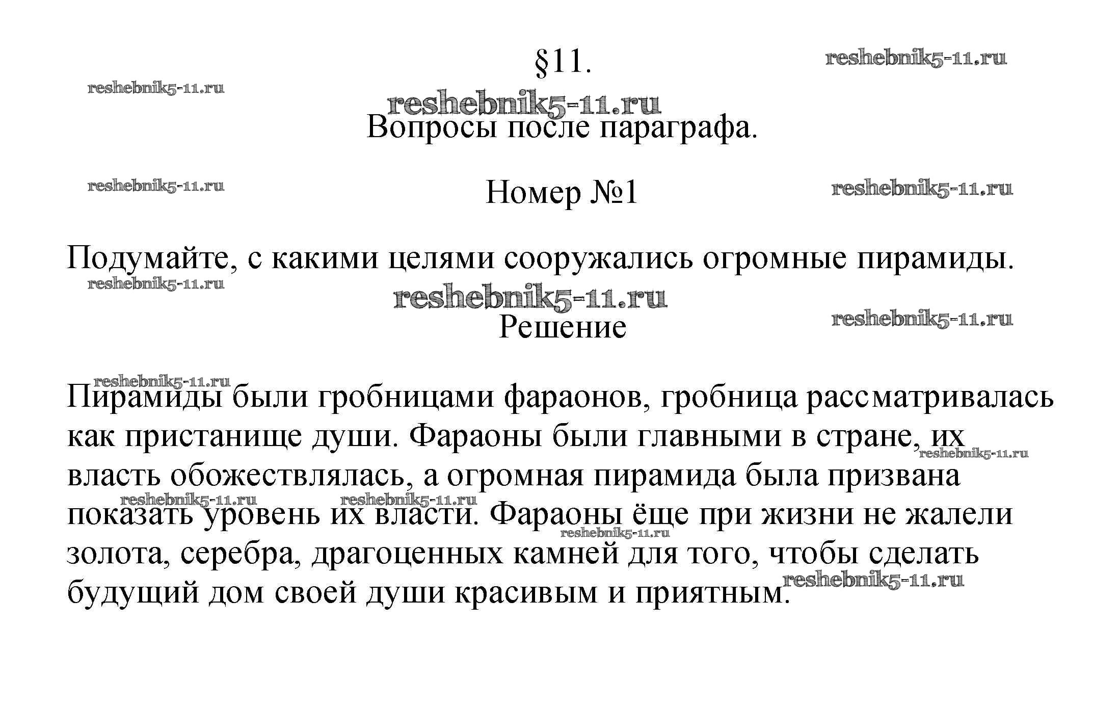 Готовая домашняя работа с ответами по Истории за 5 класс Вигасин, Годер, Свенцицкая Учебник Просвещение 2015 ФГОС - §11. Искусство Древнего Египта 1