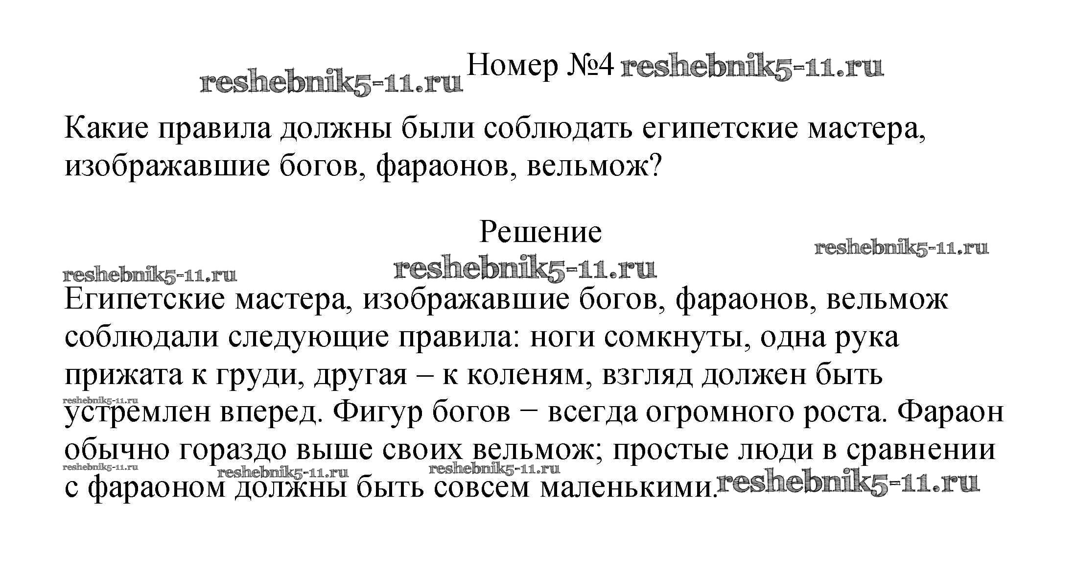 Готовая домашняя работа с ответами по Истории за 5 класс Вигасин, Годер, Свенцицкая Учебник Просвещение 2015 ФГОС - §11. Искусство Древнего Египта 4