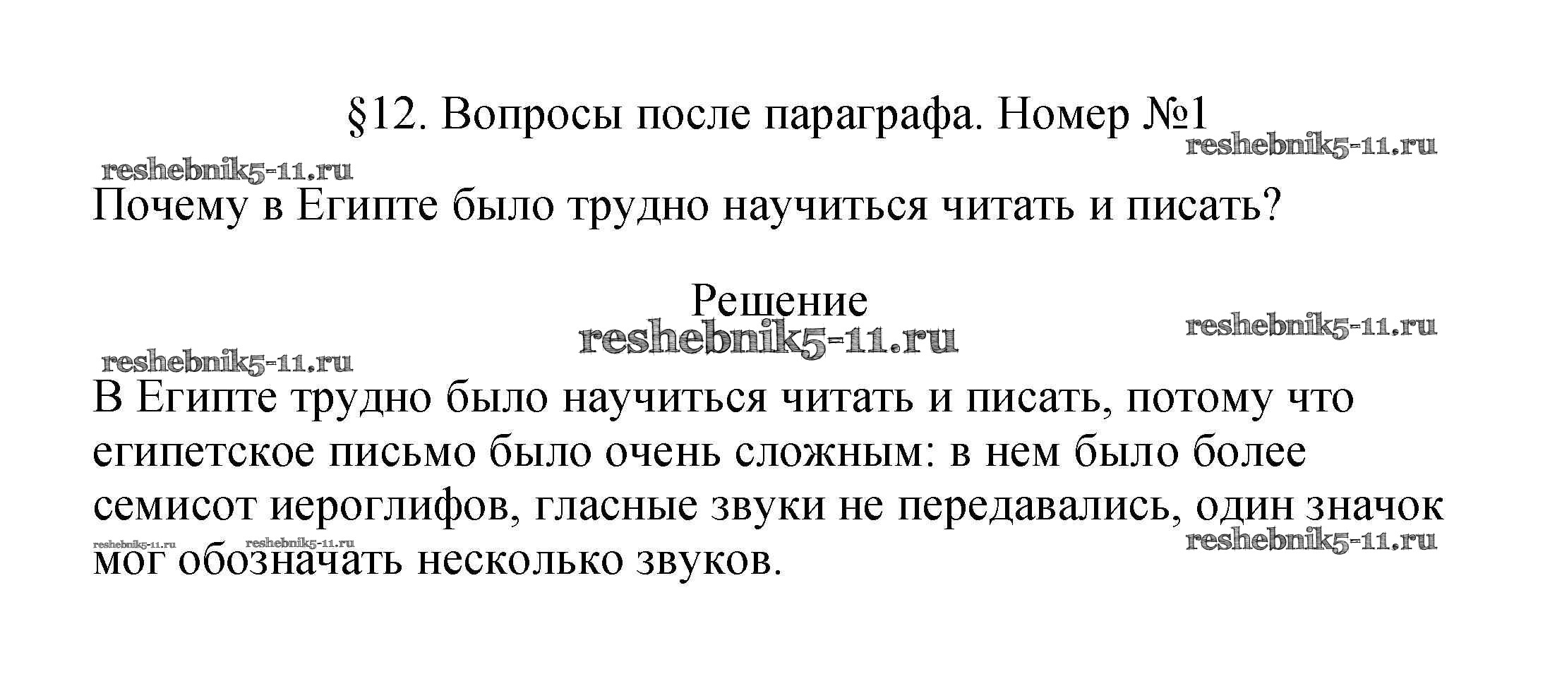 Готовая домашняя работа с ответами по Истории за 5 класс Вигасин, Годер, Свенцицкая Учебник Просвещение 2015 ФГОС - §12. Письменность и знания древних египтян 1