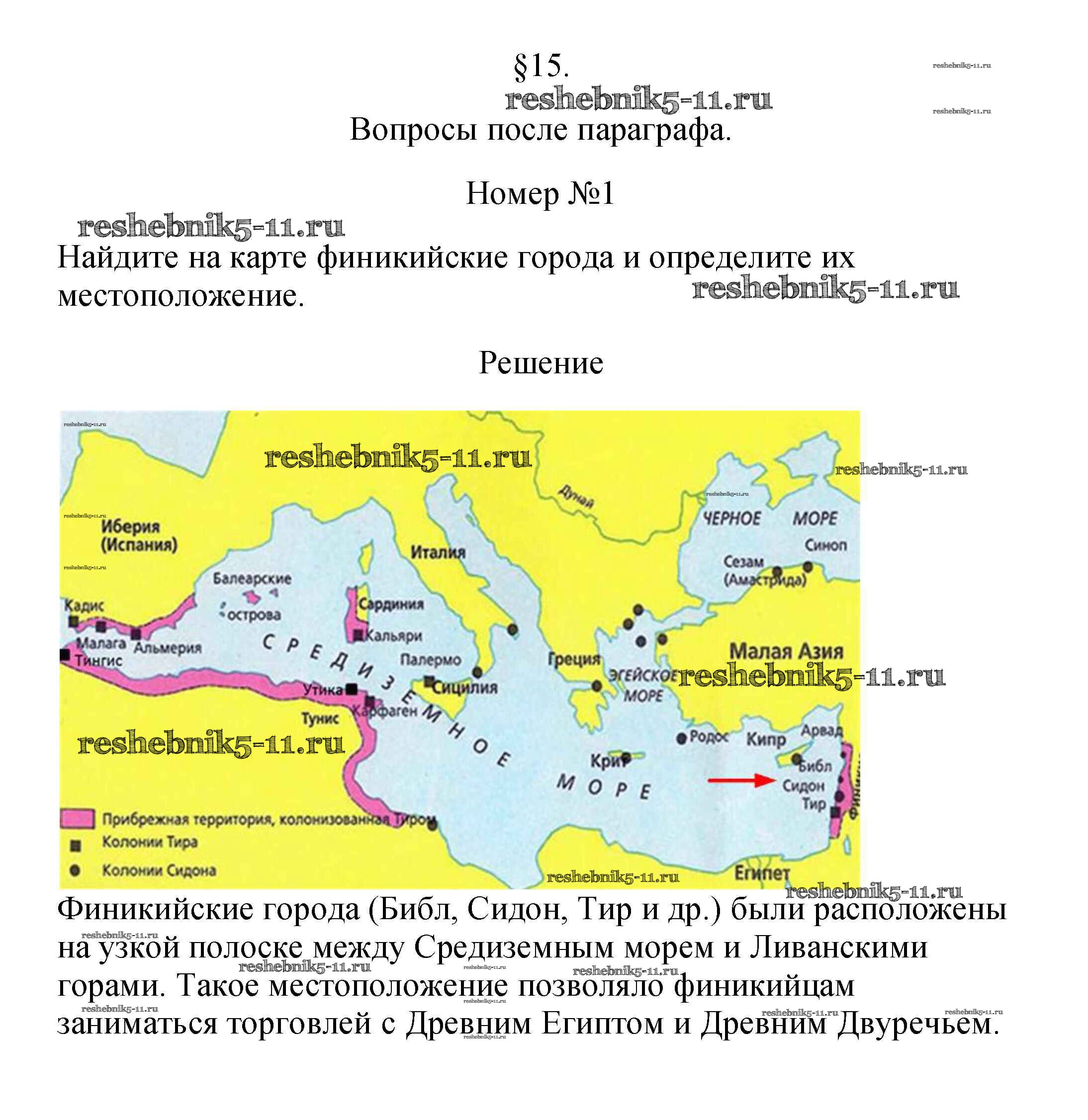 Готовая домашняя работа с ответами по Истории за 5 класс Вигасин, Годер, Свенцицкая Учебник Просвещение 2015 ФГОС - §15. Финикийские мореплаватели 1