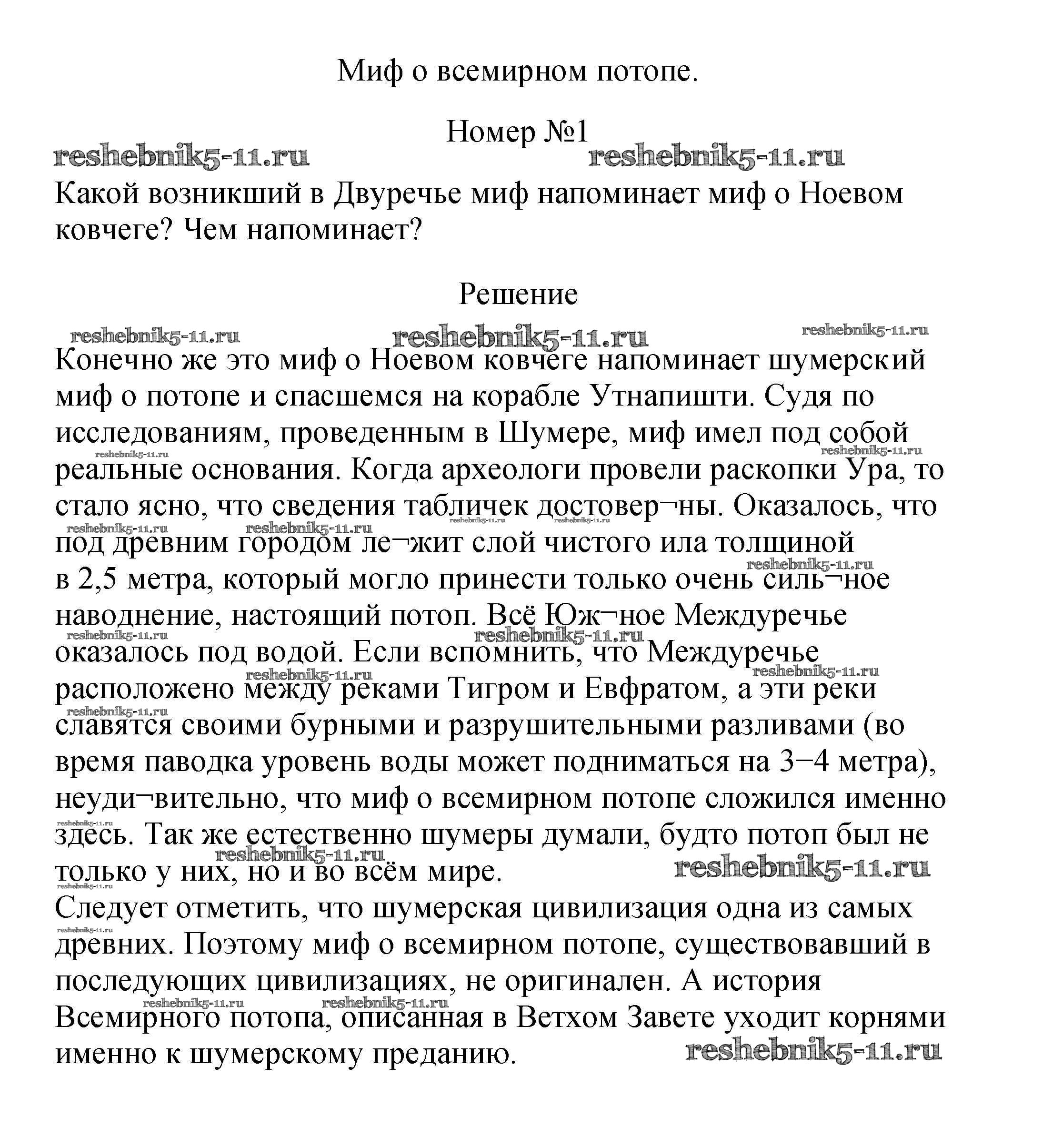 Готовая домашняя работа с ответами по Истории за 5 класс Вигасин, Годер, Свенцицкая Учебник Просвещение 2015 ФГОС - Миф о всемирном потопе 1