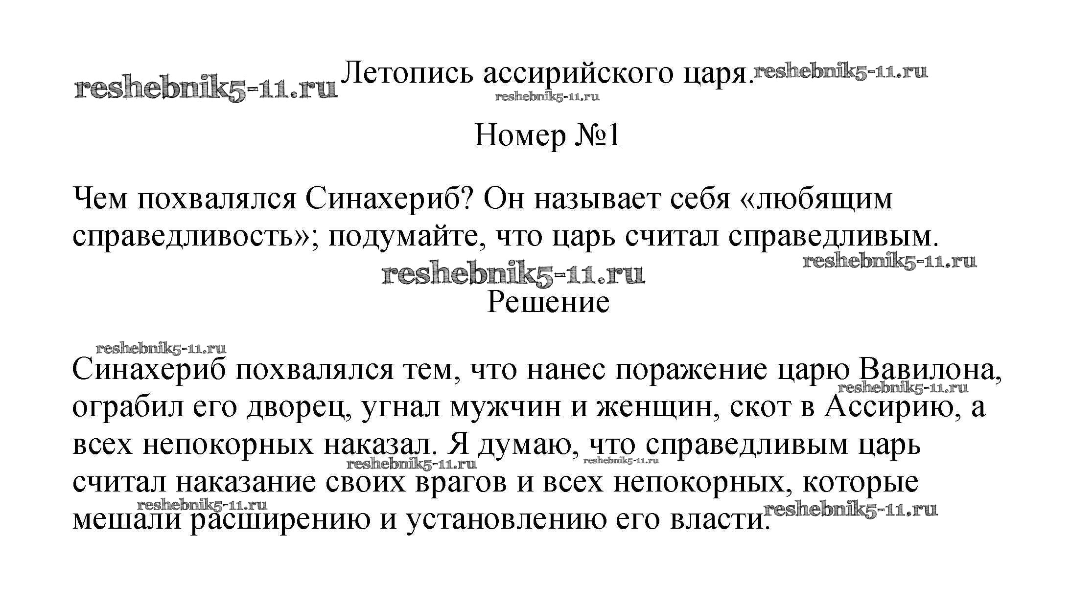 Готовая домашняя работа с ответами по Истории за 5 класс Вигасин, Годер, Свенцицкая Учебник Просвещение 2015 ФГОС - Летопись ассирийского царя 1