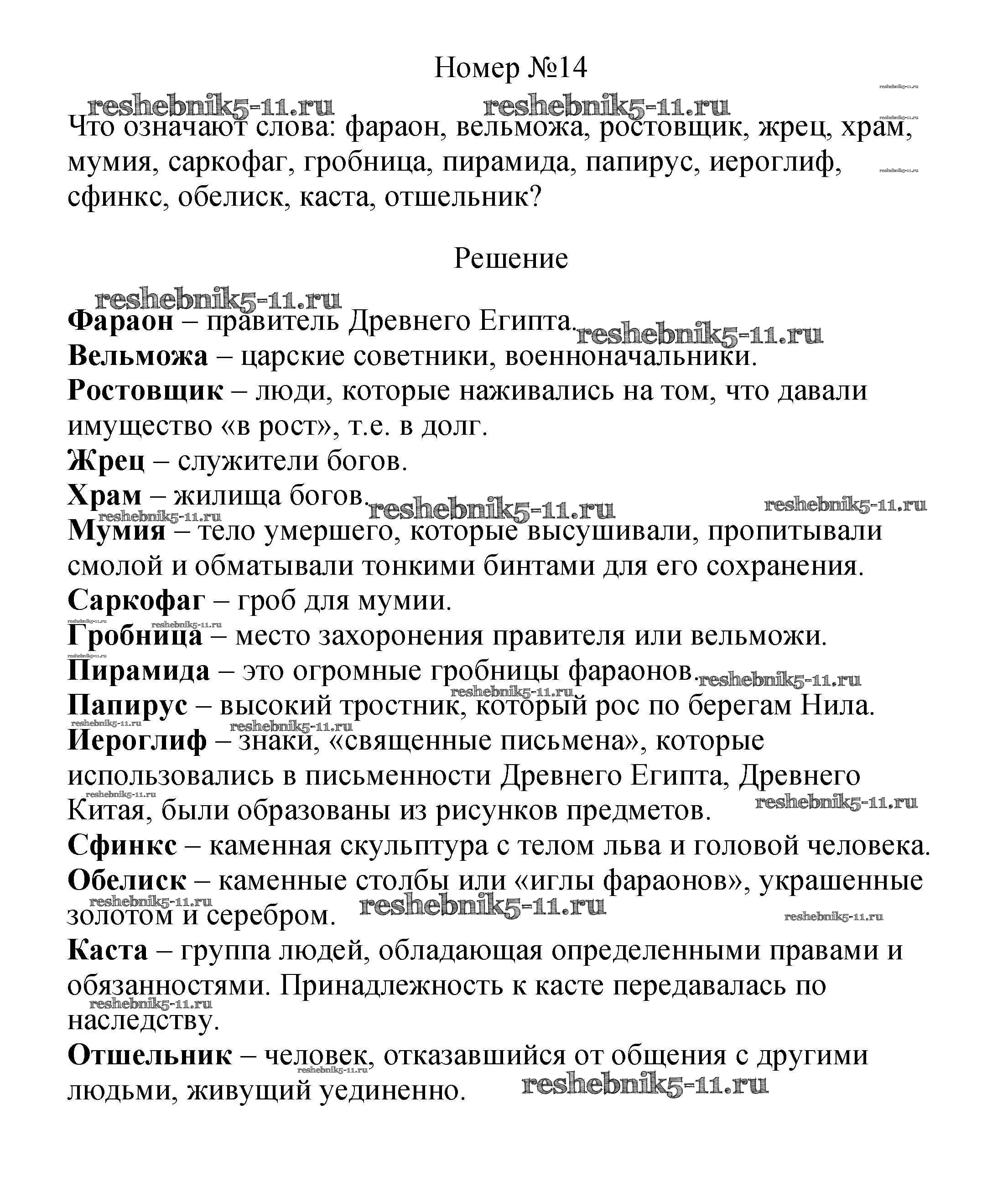 Готовая домашняя работа с ответами по Истории за 5 класс Вигасин, Годер, Свенцицкая Учебник Просвещение 2015 ФГОС - Вопросы и задания к разделу «Древний Восток» 14