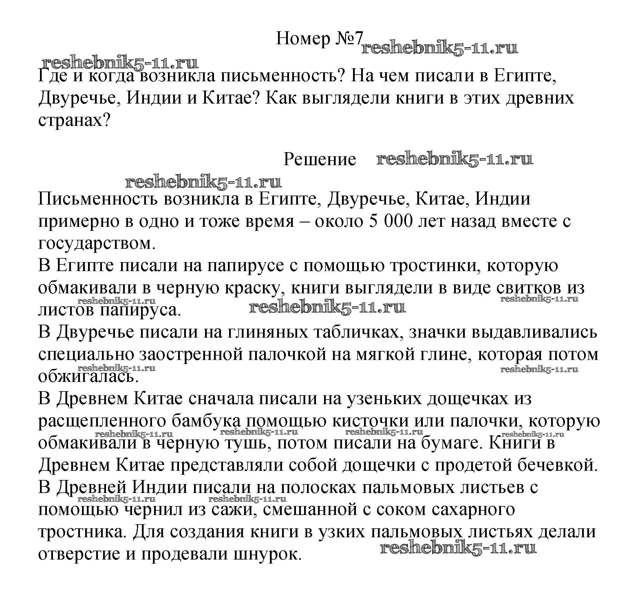 Готовая домашняя работа с ответами по Истории за 5 класс Вигасин, Годер, Свенцицкая Учебник Просвещение 2015 ФГОС - Вопросы и задания к разделу «Древний Восток» 7
