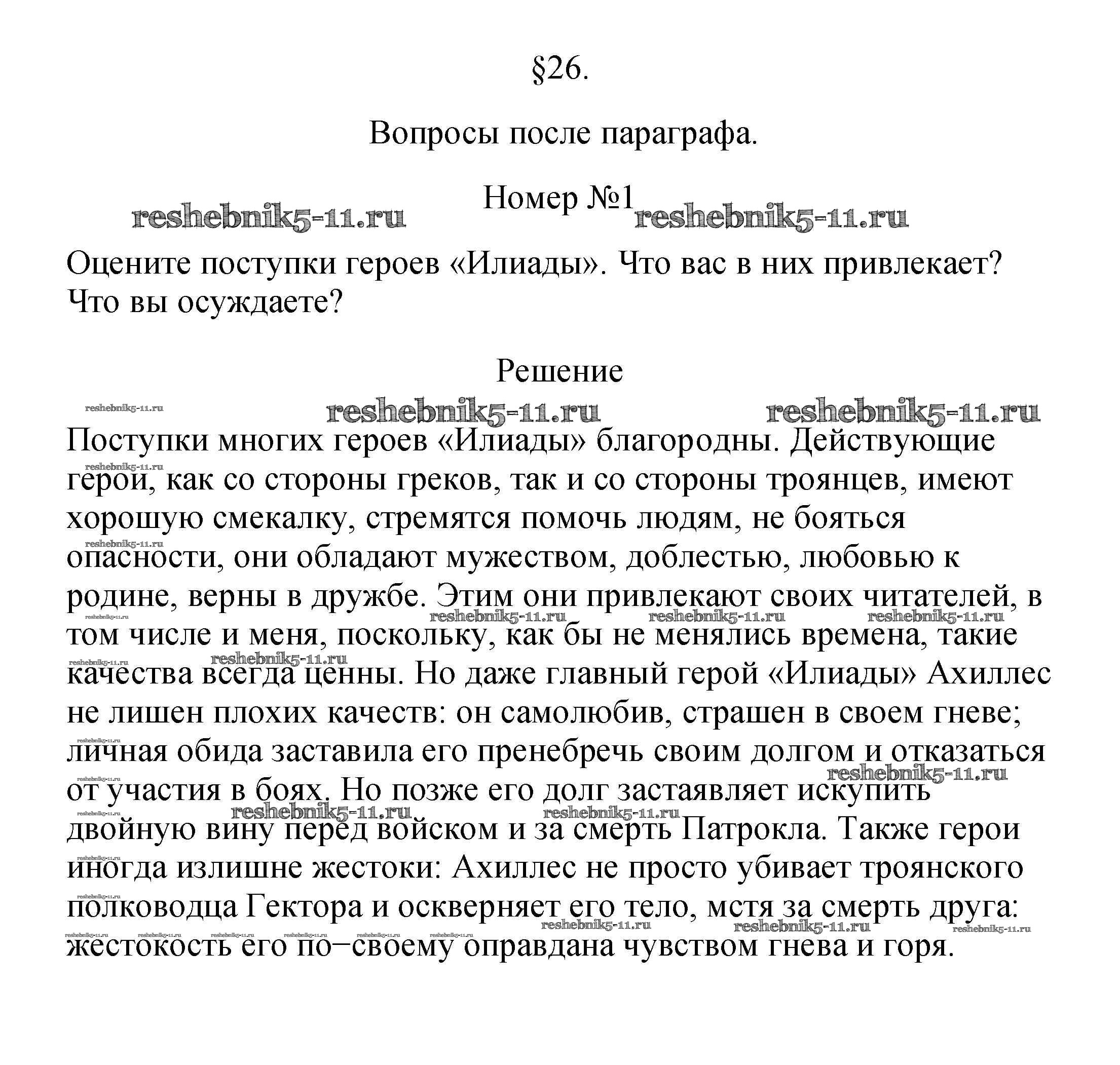 Готовая домашняя работа с ответами по Истории за 5 класс Вигасин, Годер, Свенцицкая Учебник Просвещение 2015 ФГОС - §26. Поэма Гомера «Илиада» 1