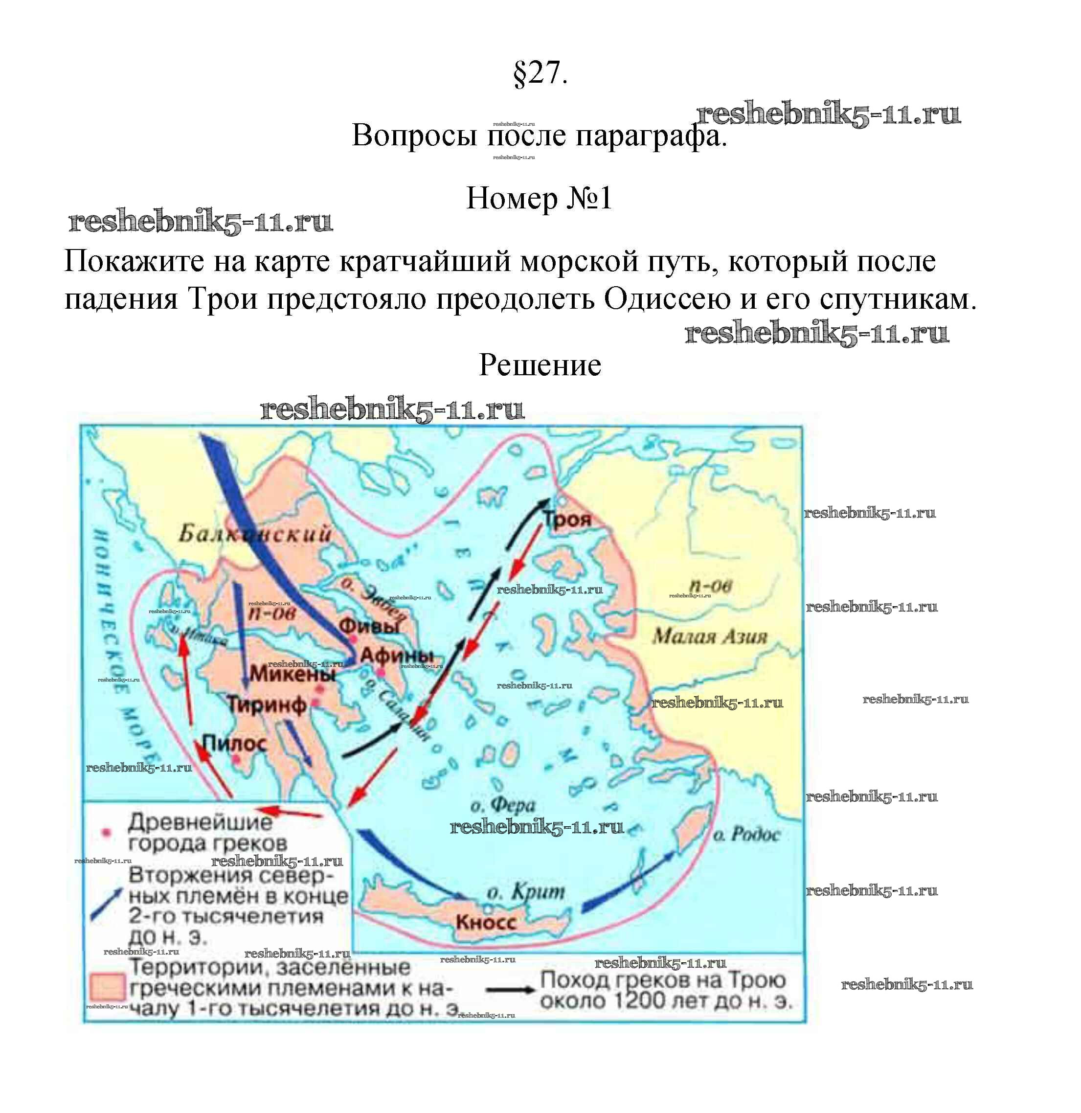 Готовая домашняя работа с ответами по Истории за 5 класс Вигасин, Годер, Свенцицкая Учебник Просвещение 2015 ФГОС - §27. Поэма Гомера «Одиссея» 1