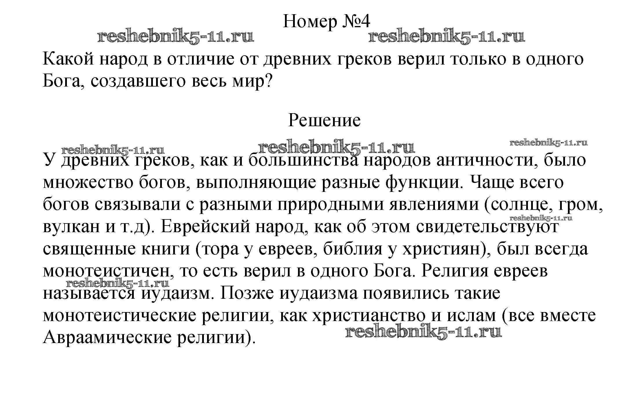 Готовая домашняя работа с ответами по Истории за 5 класс Вигасин, Годер, Свенцицкая Учебник Просвещение 2015 ФГОС - §28. Религия древних греков 4