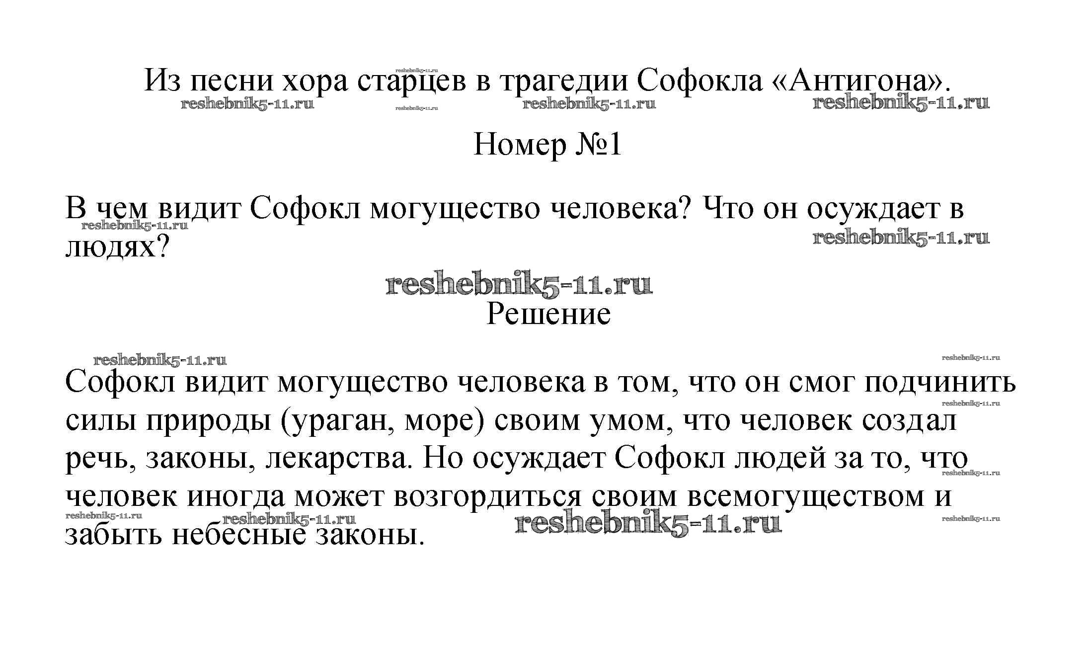 Решебник / §39 / из песни хора старцев в трагедии Софокла «Антигона» / 1