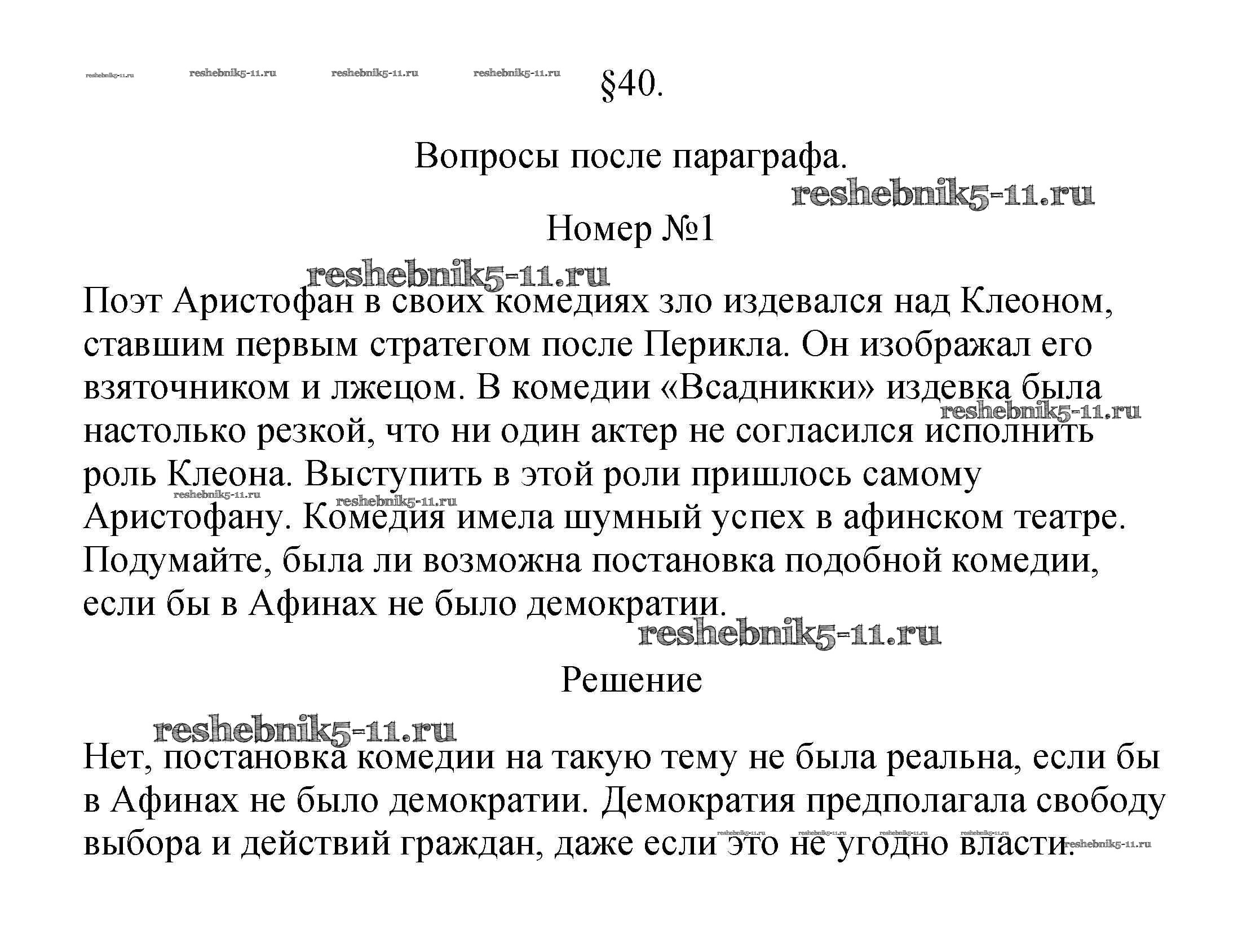 Готовая домашняя работа с ответами по Истории за 5 класс Вигасин, Годер, Свенцицкая Учебник Просвещение 2015 ФГОС - §40. Афинская демократия при Перикле 1