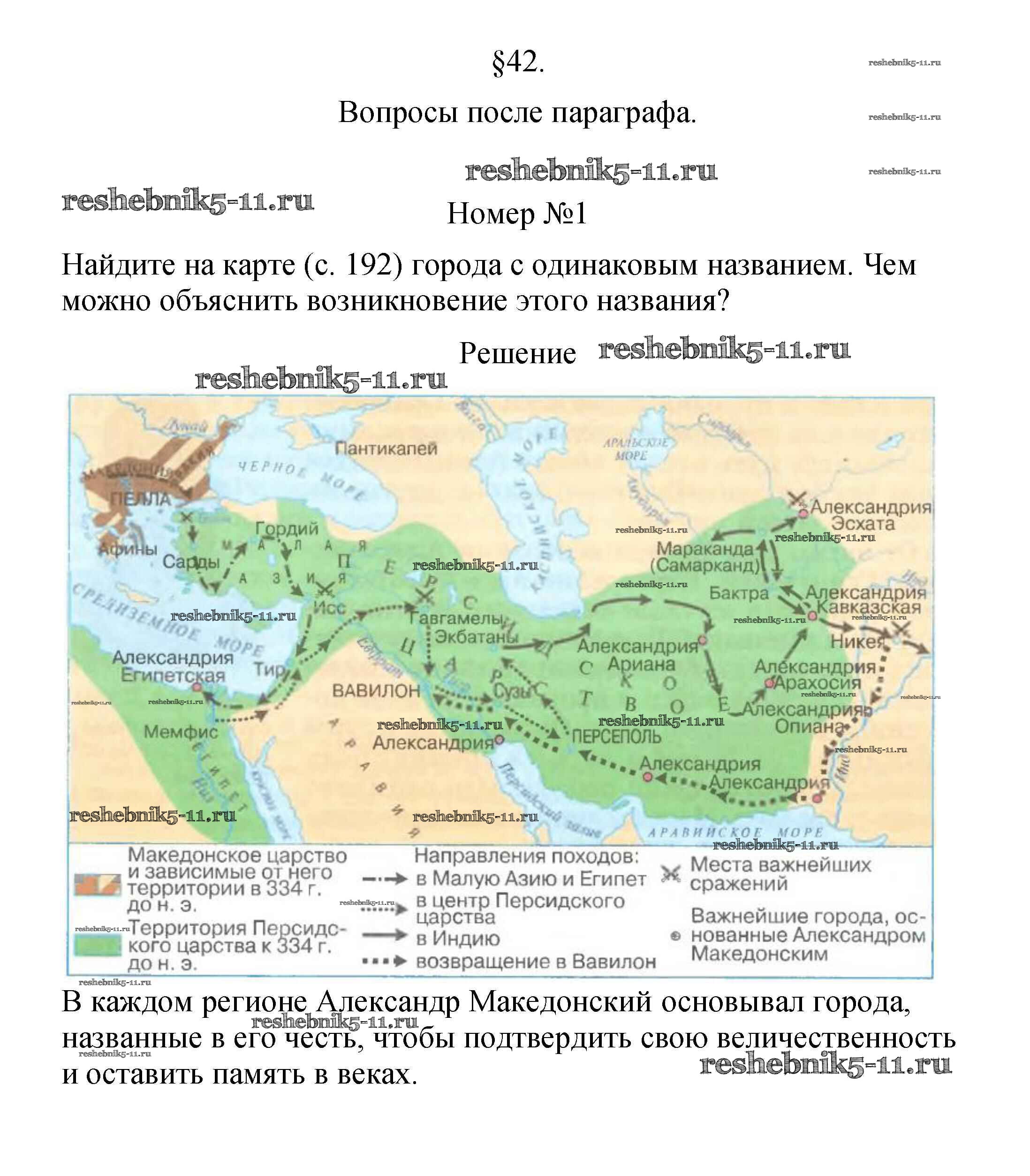 Готовая домашняя работа с ответами по Истории за 5 класс Вигасин, Годер, Свенцицкая Учебник Просвещение 2015 ФГОС - §42. Поход Александра Македонского на Восток 1