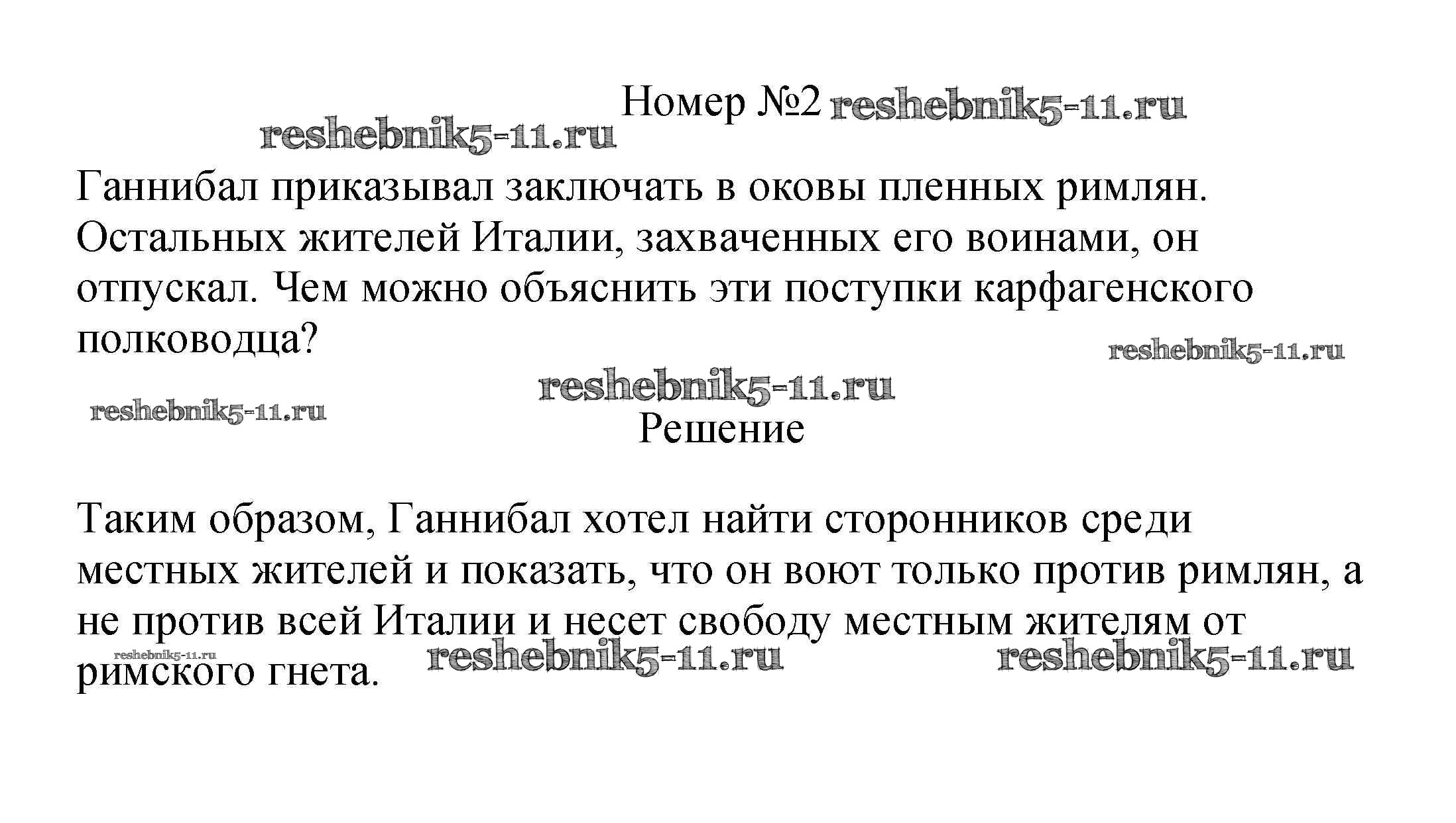 Готовая домашняя работа с ответами по Истории за 5 класс Вигасин, Годер, Свенцицкая Учебник Просвещение 2015 ФГОС - §47. Вторая война Рима с Карфагеном 2