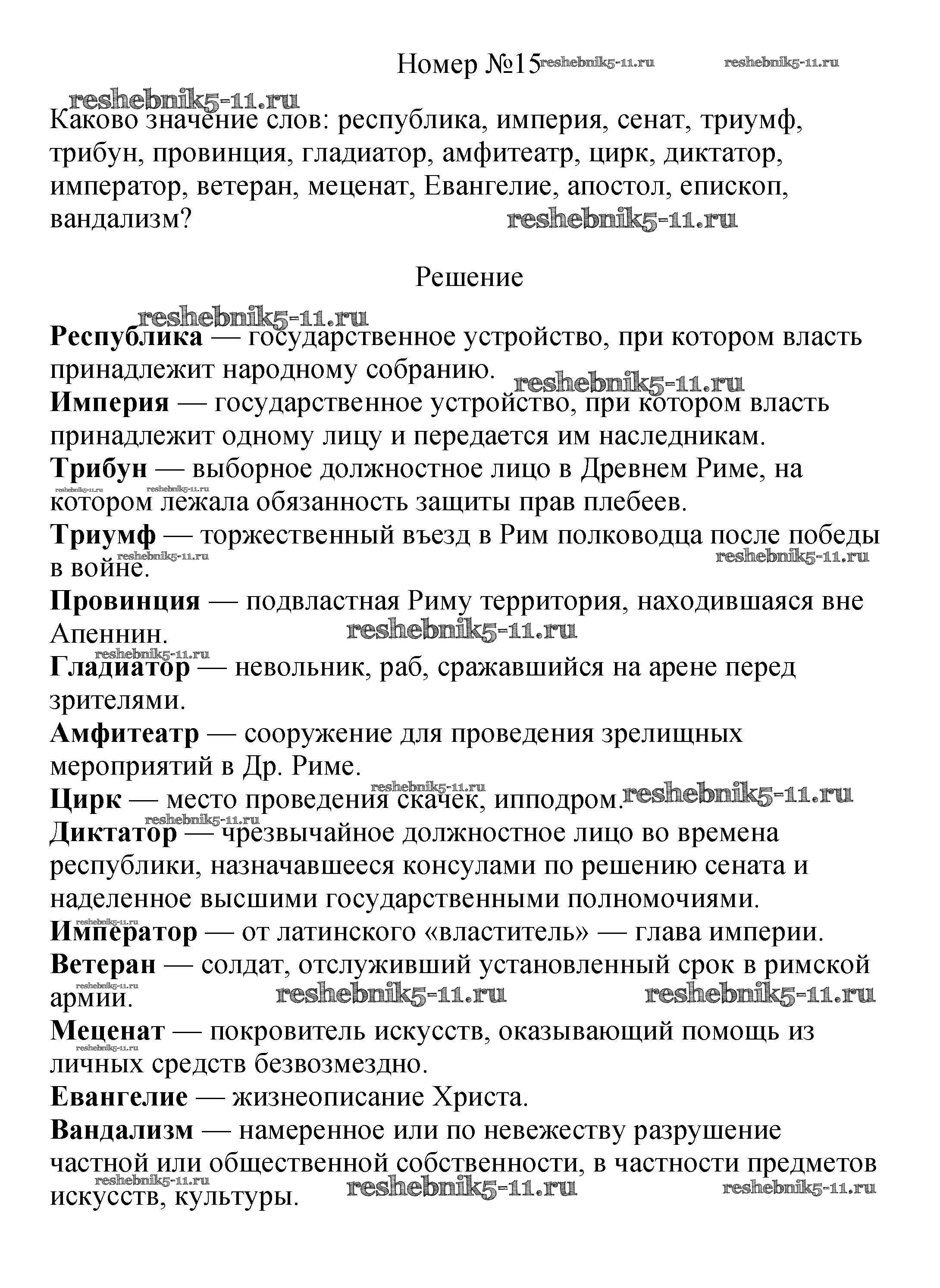 Готовая домашняя работа с ответами по Истории за 5 класс Вигасин, Годер, Свенцицкая Учебник Просвещение 2015 ФГОС - Вопросы и задания к разделу «Древний Рим» 15