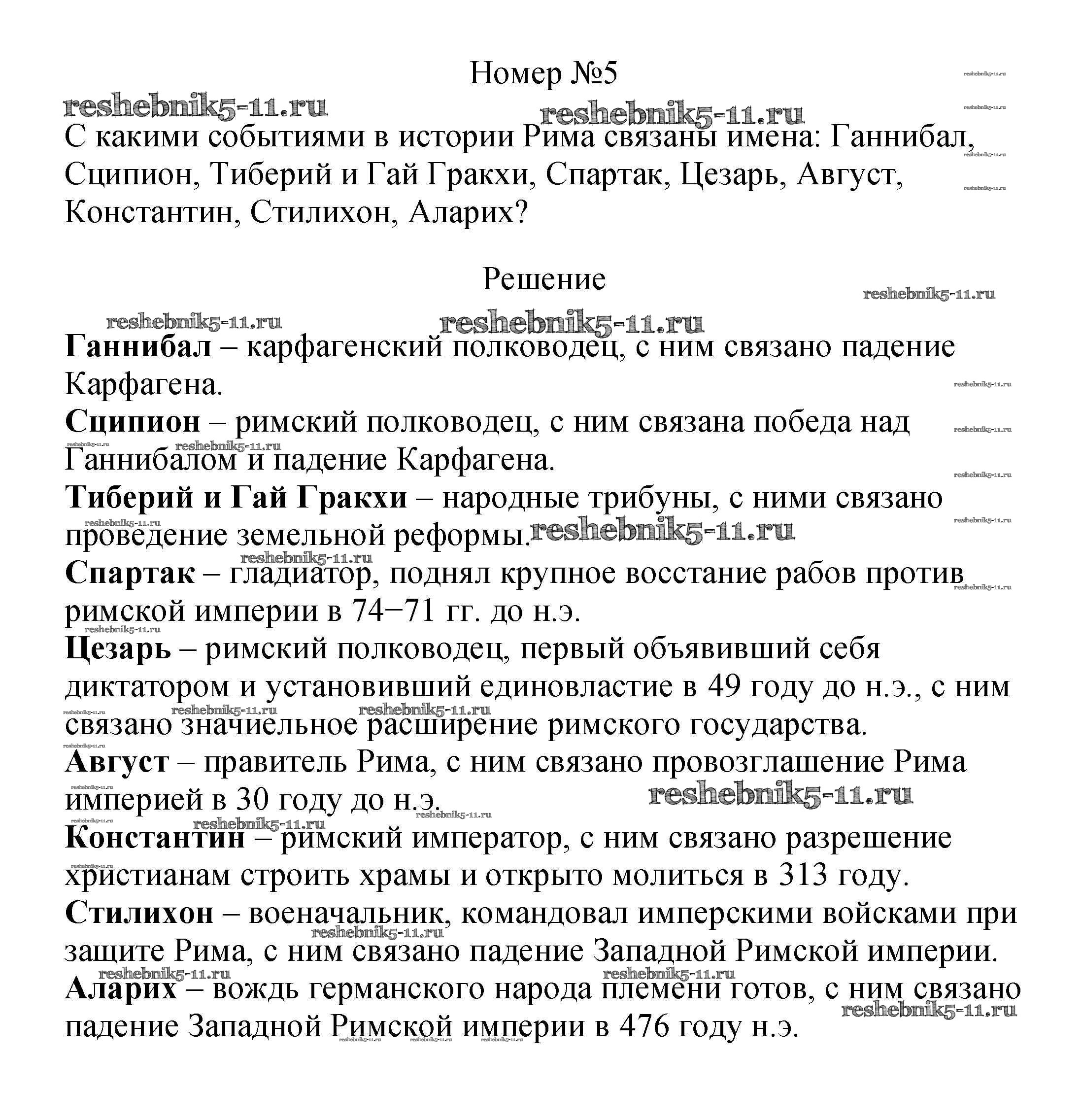 Готовая домашняя работа с ответами по Истории за 5 класс Вигасин, Годер, Свенцицкая Учебник Просвещение 2015 ФГОС - Вопросы и задания к разделу «Древний Рим» 5