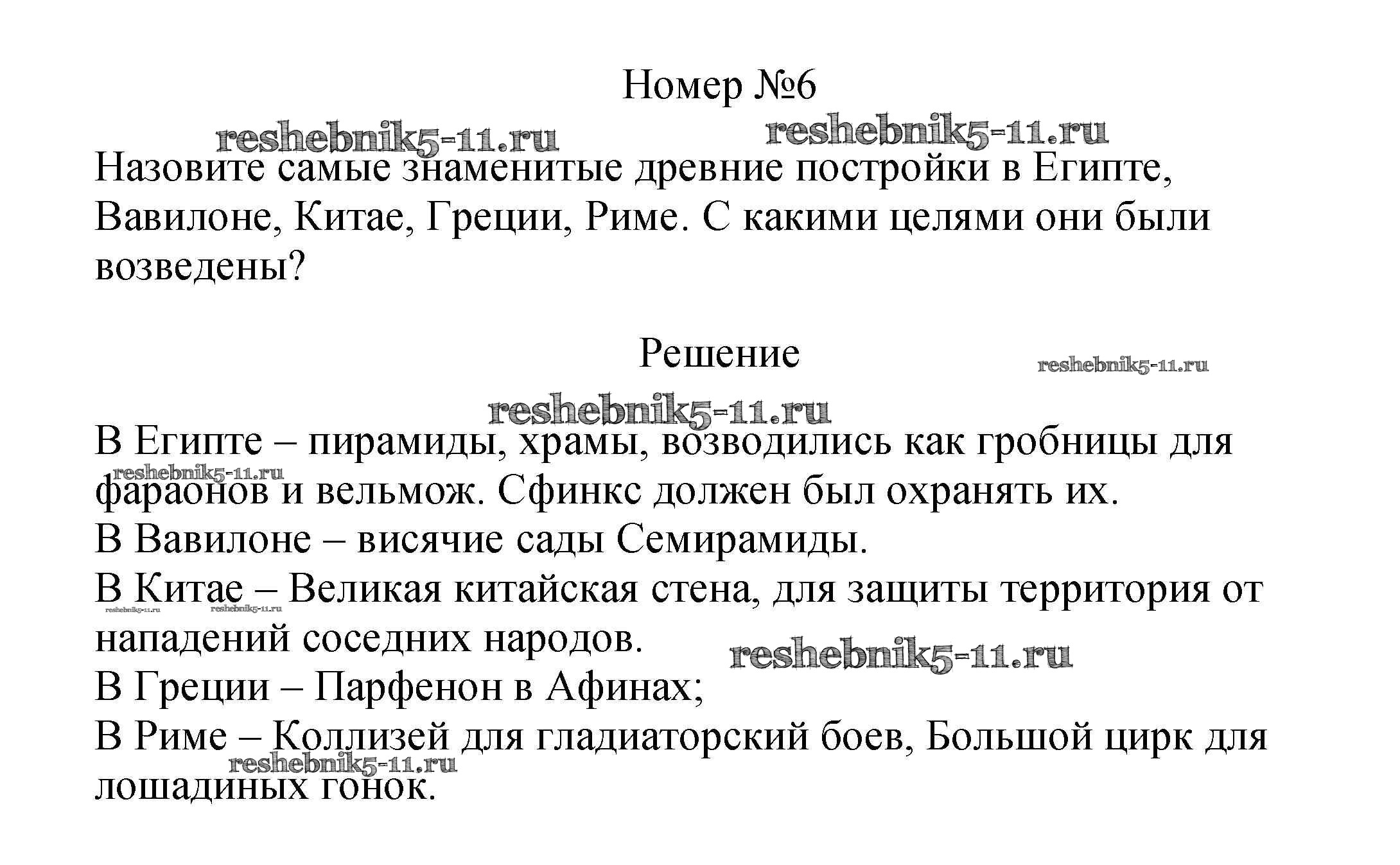 Готовая домашняя работа с ответами по Истории за 5 класс Вигасин, Годер, Свенцицкая Учебник Просвещение 2015 ФГОС - Какие достижения культуры древних вам известны? 6