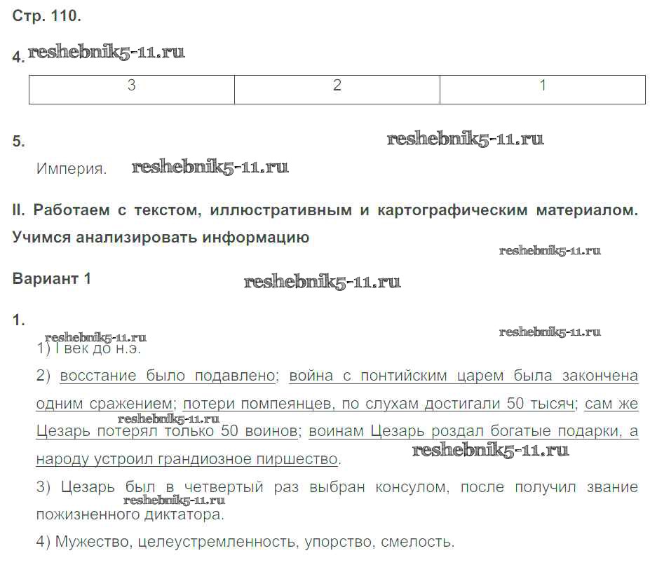 Готовая домашняя работа с ответами по Истории за 5 класс Чернова Рабочая тетрадь УМК Экзамен 2019 ФГОС - Страницы 110