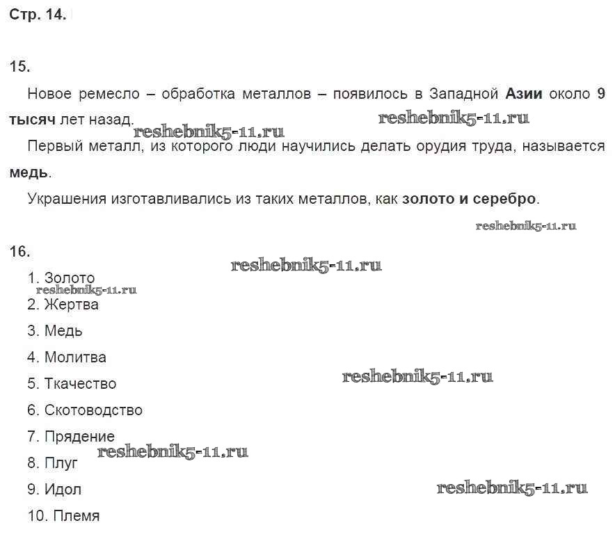 Готовая домашняя работа с ответами по Истории за 5 класс Годер Рабочая тетрадь Часть 1, 2 Просвещение 2017 ФГОС - Часть 1. Страницы 14