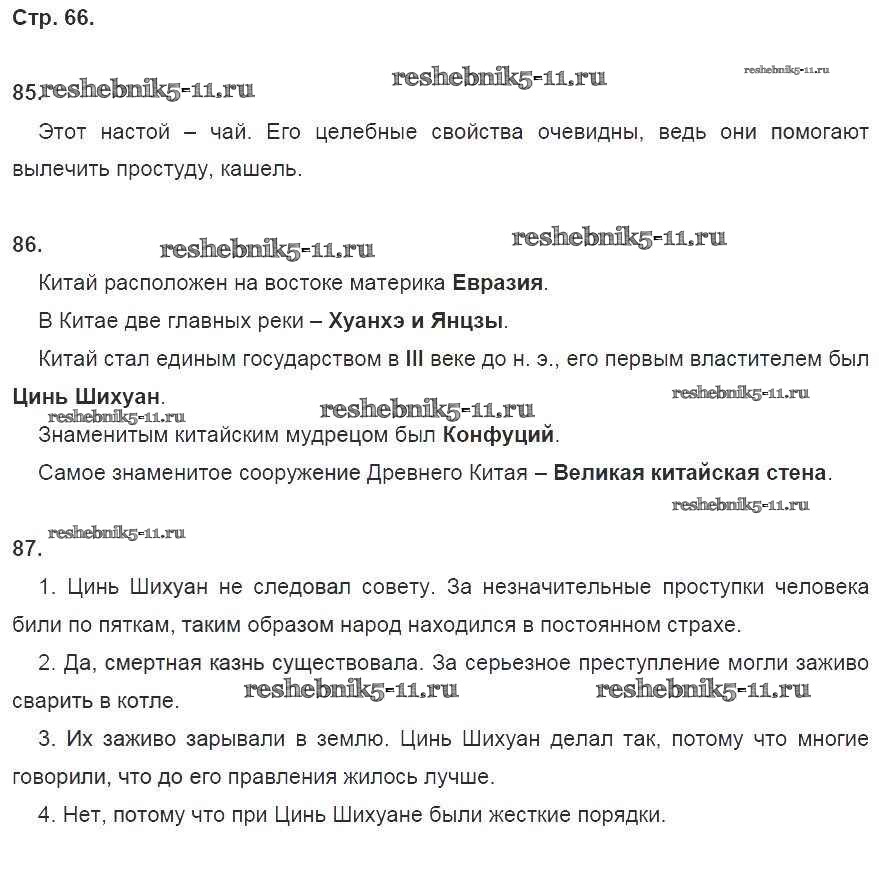 Готовая домашняя работа с ответами по Истории за 5 класс Годер Рабочая тетрадь Часть 1, 2 Просвещение 2017 ФГОС - Часть 1. Страницы 66