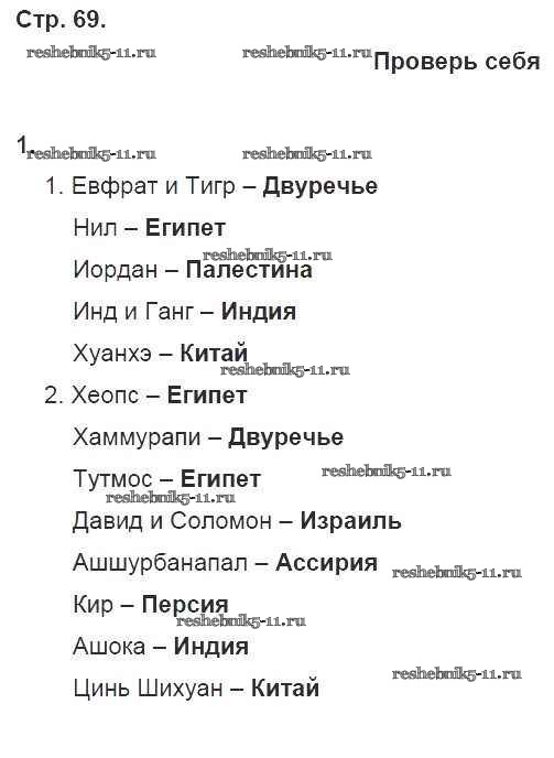 Готовая домашняя работа с ответами по Истории за 5 класс Годер Рабочая тетрадь Часть 1, 2 Просвещение 2017 ФГОС - Часть 1. Страницы 69