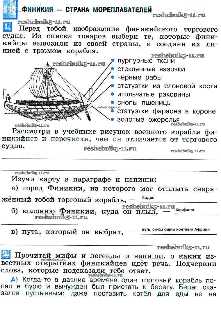 Готовая домашняя работа с ответами по Истории за 5 класс Уколова Рабочая тетрадь Просвещение 2012 - Параграфы 16