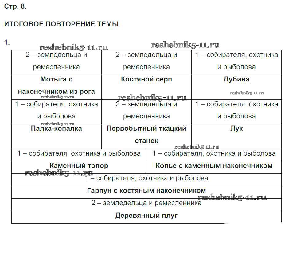 Готовая домашняя работа с ответами по Истории за 5 класс Абрамов, Абрамова Рабочая тетрадь Вертикаль Дрофа 2019 ФГОС - Тема 1. Как жили люди в древности стр. 8