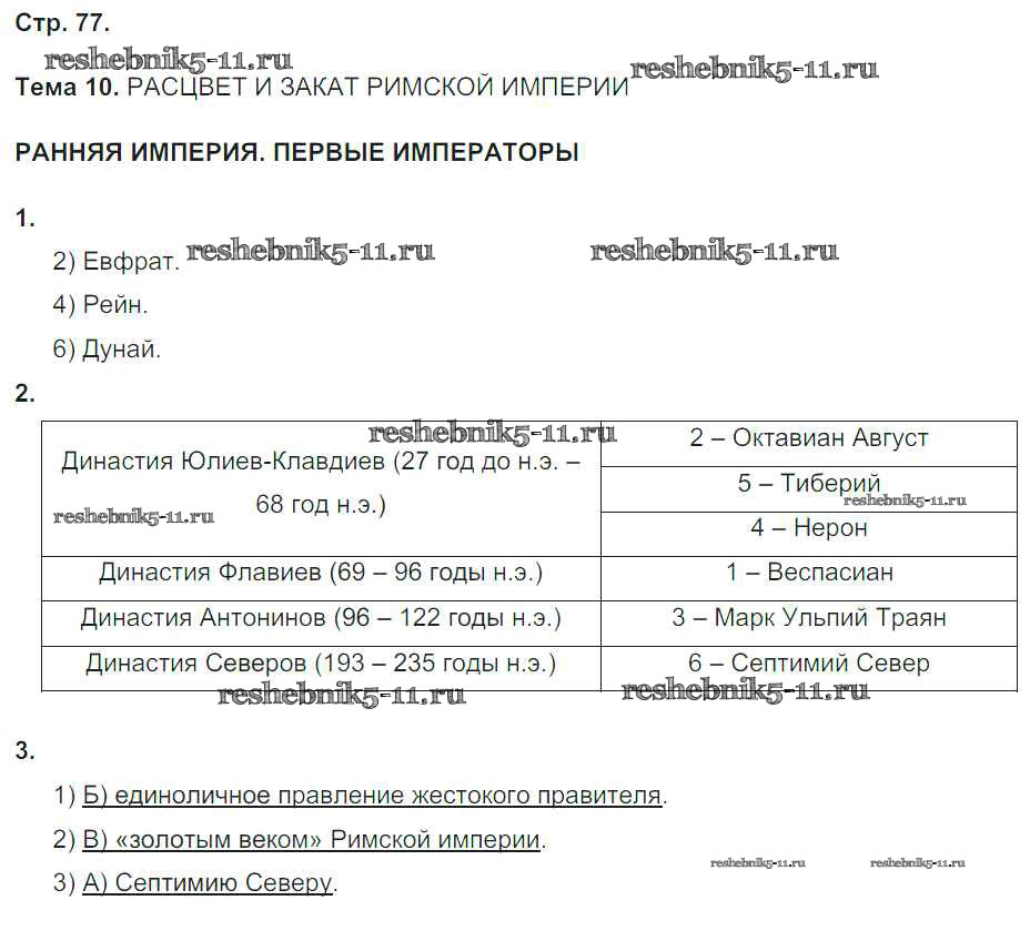 Готовая домашняя работа с ответами по Истории за 5 класс Абрамов, Абрамова Рабочая тетрадь Вертикаль Дрофа 2019 ФГОС - Тема 10. Расцвет и закат Римской империи стр. 77