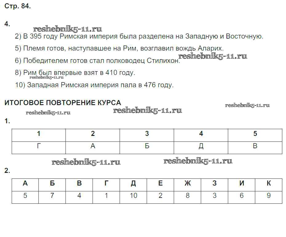 Готовая домашняя работа с ответами по Истории за 5 класс Абрамов, Абрамова Рабочая тетрадь Вертикаль Дрофа 2019 ФГОС - Тема 10. Расцвет и закат Римской империи стр. 84