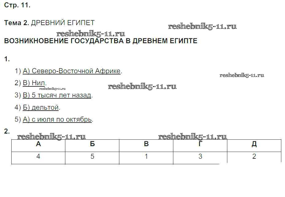 Готовая домашняя работа с ответами по Истории за 5 класс Абрамов, Абрамова Рабочая тетрадь Вертикаль Дрофа 2019 ФГОС - Тема 2. Древний Египет стр. 11
