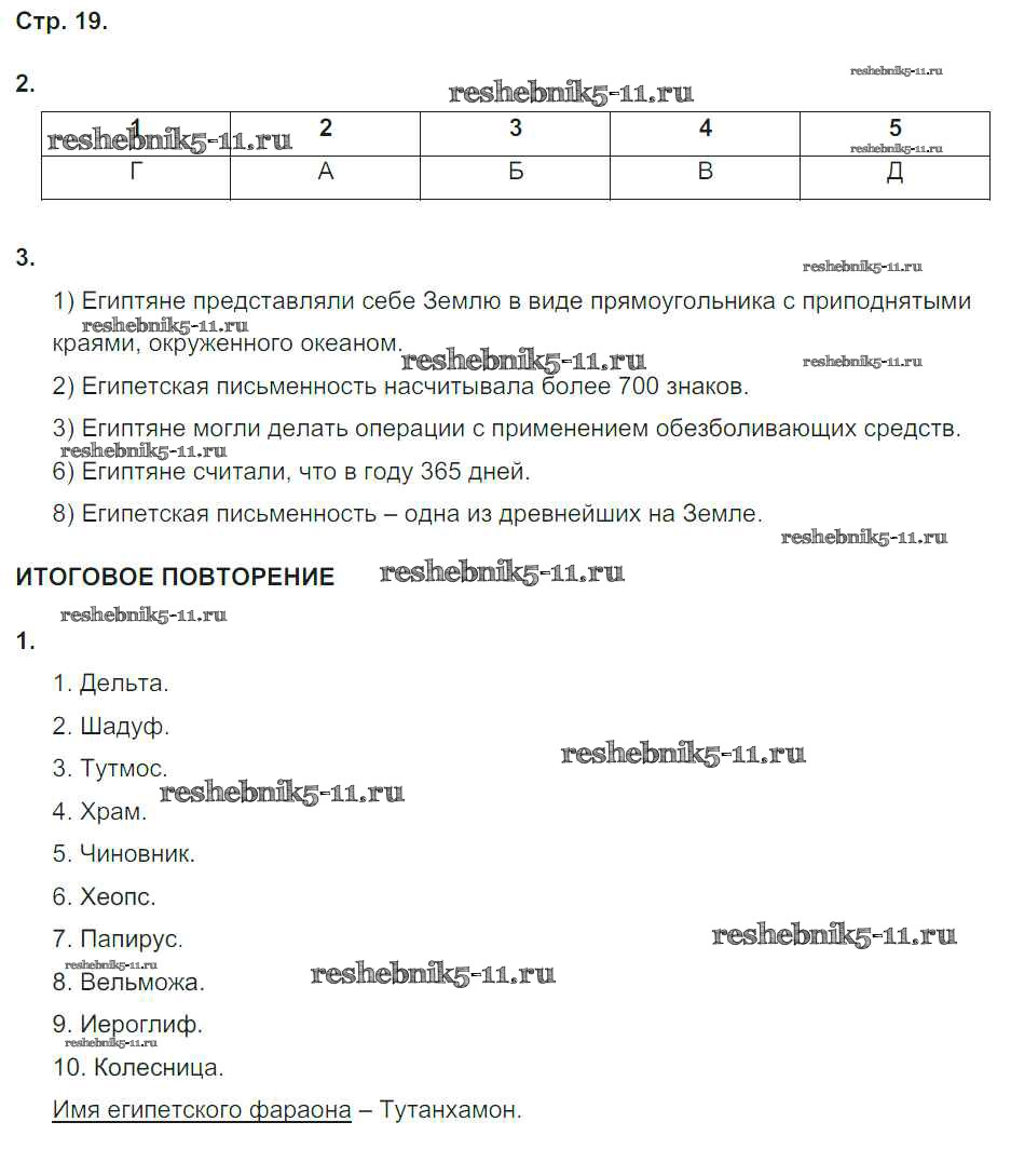 Готовая домашняя работа с ответами по Истории за 5 класс Абрамов, Абрамова Рабочая тетрадь Вертикаль Дрофа 2019 ФГОС - Тема 2. Древний Египет стр. 19