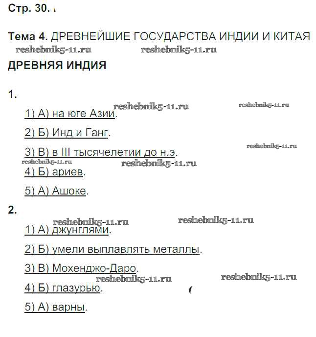 Готовая домашняя работа с ответами по Истории за 5 класс Абрамов, Абрамова Рабочая тетрадь Вертикаль Дрофа 2019 ФГОС - Тема 4. Древнейшие государства Индии и Китая стр. 30