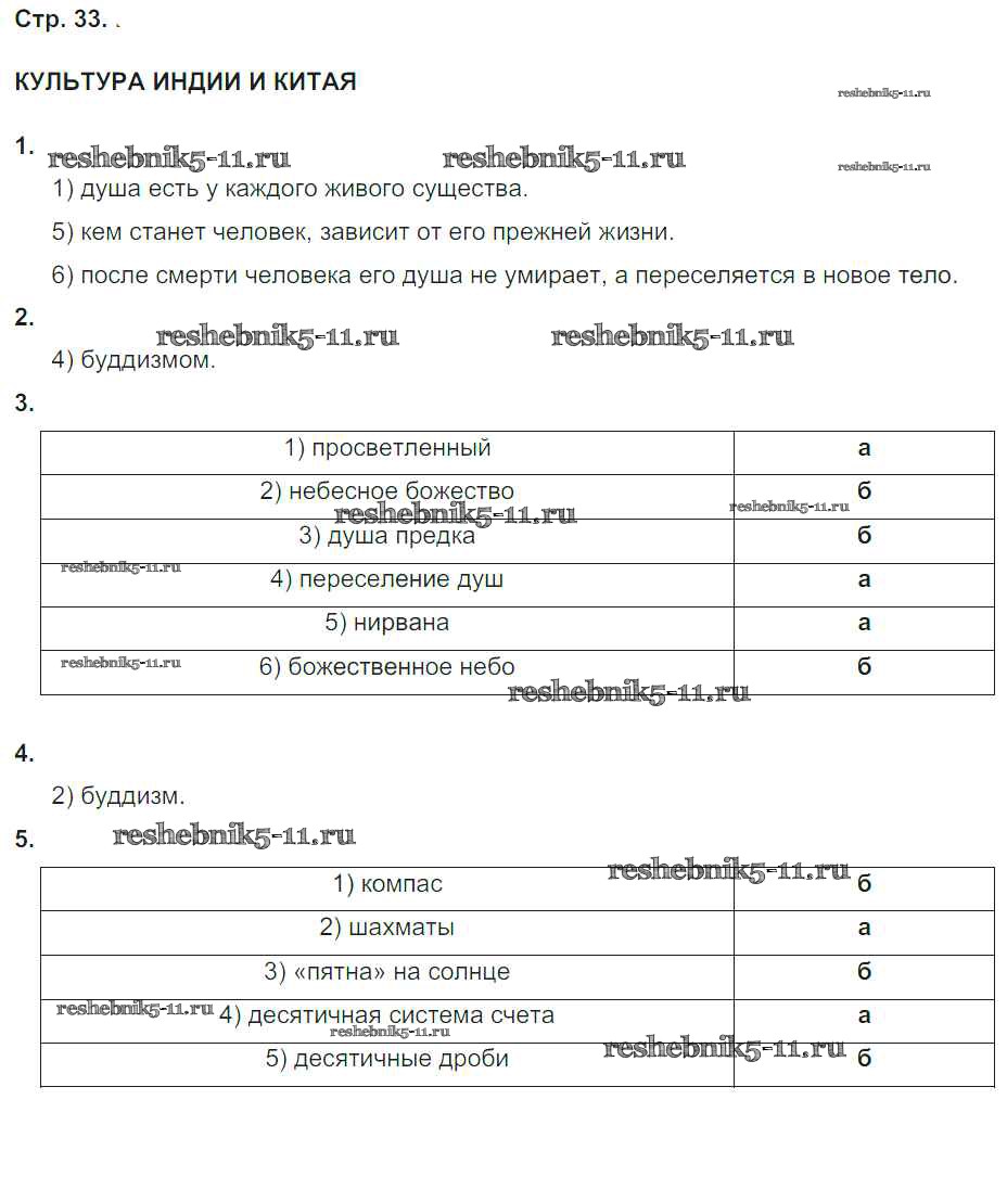 Готовая домашняя работа с ответами по Истории за 5 класс Абрамов, Абрамова Рабочая тетрадь Вертикаль Дрофа 2019 ФГОС - Тема 4. Древнейшие государства Индии и Китая стр. 33