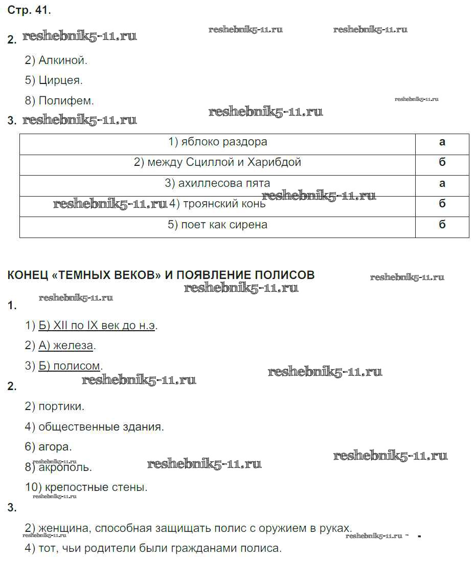 Готовая домашняя работа с ответами по Истории за 5 класс Абрамов, Абрамова Рабочая тетрадь Вертикаль Дрофа 2019 ФГОС - Тема 5. Жители и государства Древней Греции стр. 41