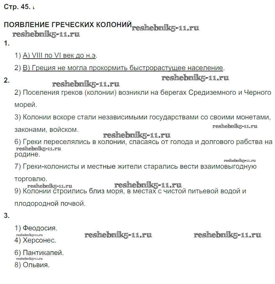 Готовая домашняя работа с ответами по Истории за 5 класс Абрамов, Абрамова Рабочая тетрадь Вертикаль Дрофа 2019 ФГОС - Тема 5. Жители и государства Древней Греции стр. 45