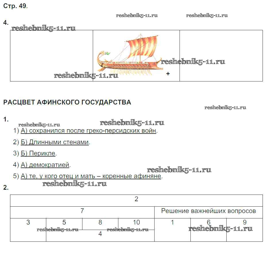 Готовая домашняя работа с ответами по Истории за 5 класс Абрамов, Абрамова Рабочая тетрадь Вертикаль Дрофа 2019 ФГОС - Тема 5. Жители и государства Древней Греции стр. 49