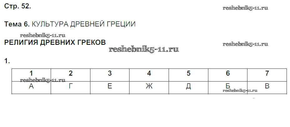 Готовая домашняя работа с ответами по Истории за 5 класс Абрамов, Абрамова Рабочая тетрадь Вертикаль Дрофа 2019 ФГОС - Тема 6. Культура Древней Греции стр. 52