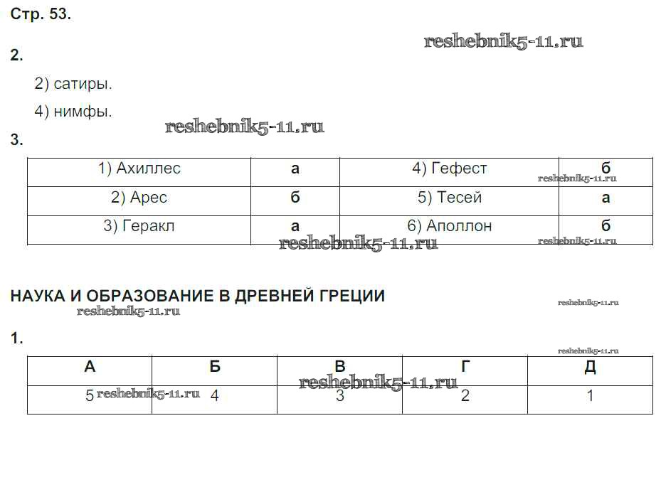 Готовая домашняя работа с ответами по Истории за 5 класс Абрамов, Абрамова Рабочая тетрадь Вертикаль Дрофа 2019 ФГОС - Тема 6. Культура Древней Греции стр. 53