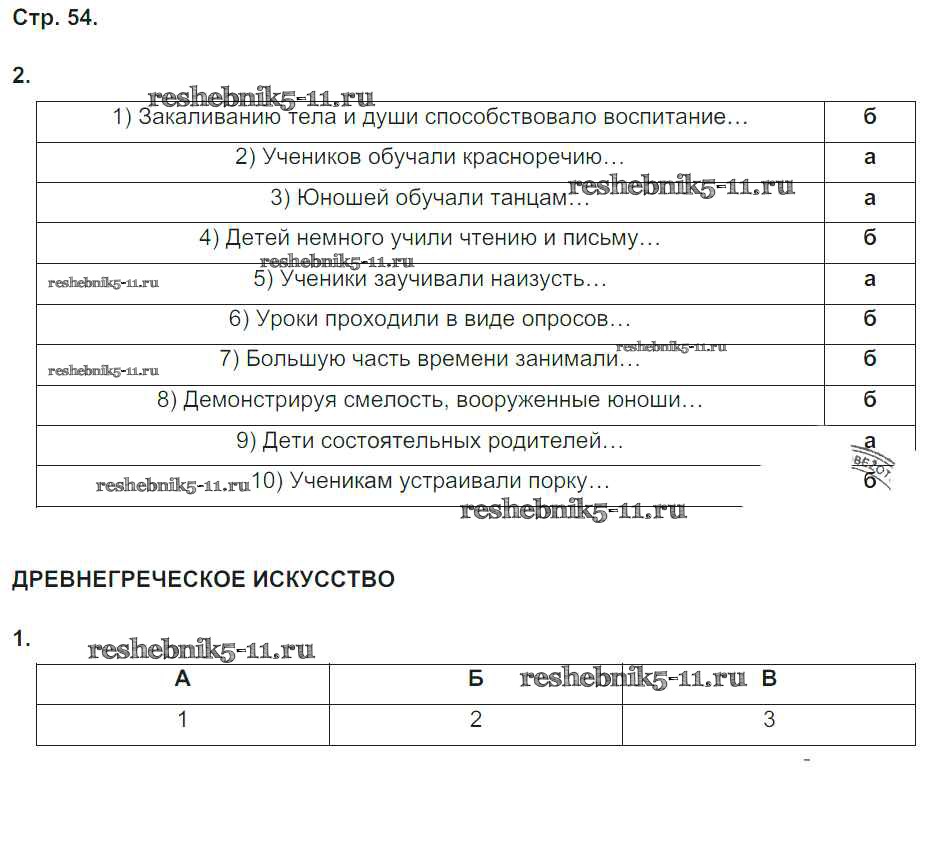 Готовая домашняя работа с ответами по Истории за 5 класс Абрамов, Абрамова Рабочая тетрадь Вертикаль Дрофа 2019 ФГОС - Тема 6. Культура Древней Греции стр. 54