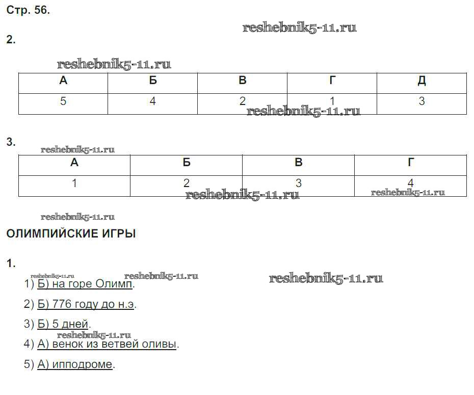 Готовая домашняя работа с ответами по Истории за 5 класс Абрамов, Абрамова Рабочая тетрадь Вертикаль Дрофа 2019 ФГОС - Тема 6. Культура Древней Греции стр. 56