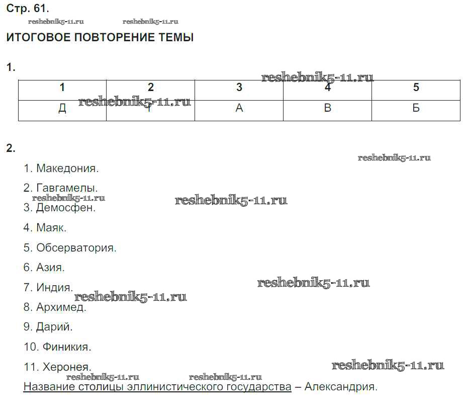 Готовая домашняя работа с ответами по Истории за 5 класс Абрамов, Абрамова Рабочая тетрадь Вертикаль Дрофа 2019 ФГОС - Тема 7. Создание державы Александра Македонского. Эпоха эллинизма стр. 61