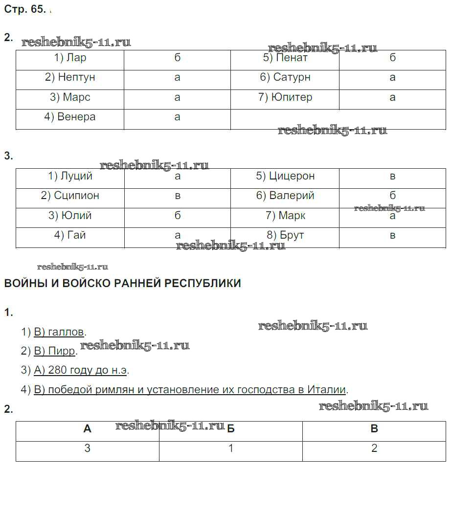 Готовая домашняя работа с ответами по Истории за 5 класс Абрамов, Абрамова Рабочая тетрадь Вертикаль Дрофа 2019 ФГОС - Тема 8. Рим покоряет Италию стр. 65