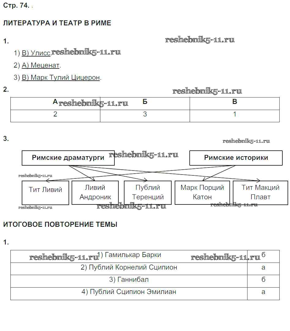 Готовая домашняя работа с ответами по Истории за 5 класс Абрамов, Абрамова Рабочая тетрадь Вертикаль Дрофа 2019 ФГОС - Тема 9. Рим — властелин морей стр. 74