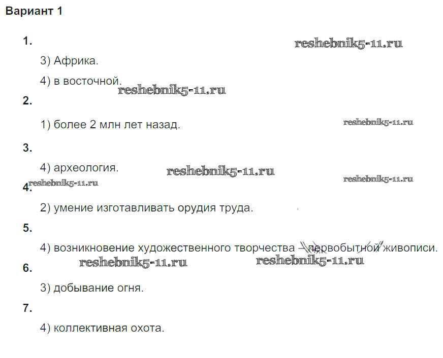 Готовая домашняя работа с ответами по Истории за 5 класс Крючкова Проверочные и контрольные работы Просвещение 2015 ФГОС - Проверочная работа Вариант №1