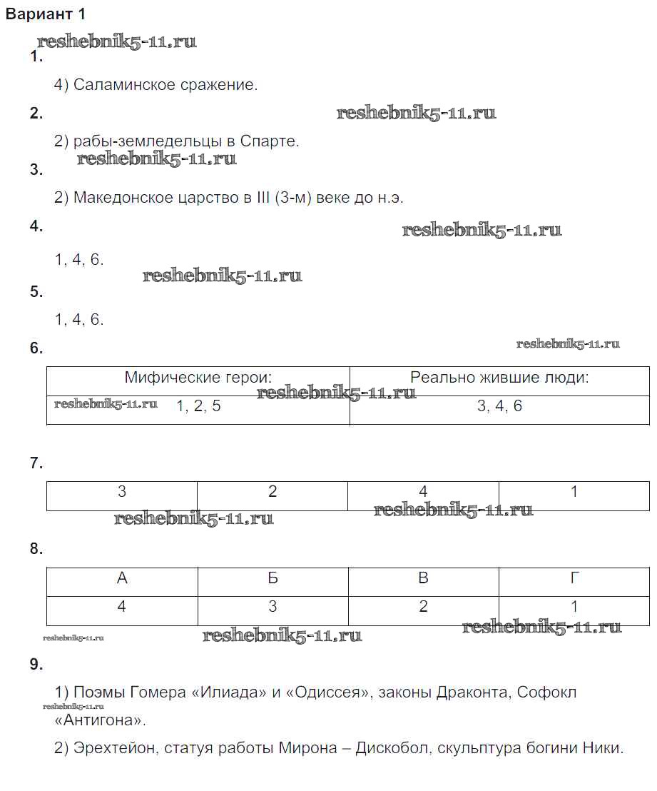 Готовая домашняя работа с ответами по Истории за 5 класс Крючкова Проверочные и контрольные работы Просвещение 2015 ФГОС - Итоговая контрольная работа по теме Древняя Греция Вариант №1