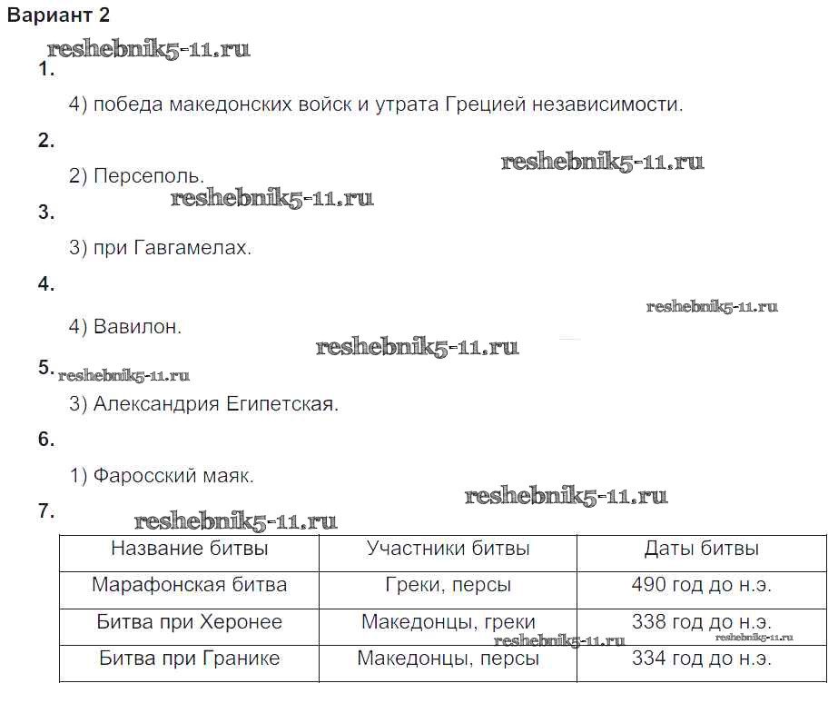 Готовая домашняя работа с ответами по Истории за 5 класс Крючкова Проверочные и контрольные работы Просвещение 2015 ФГОС - Итоговая контрольная работа к главе Македонские завоевания в IV веке до н.э. Вариант №2