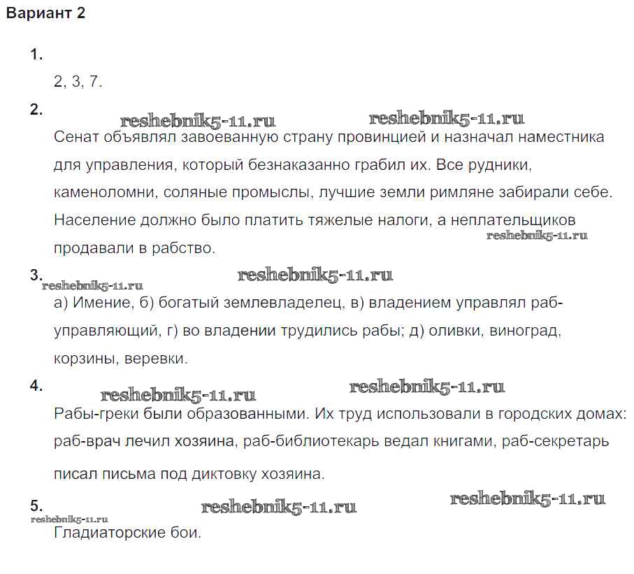 Готовая домашняя работа с ответами по Истории за 5 класс Крючкова Проверочные и контрольные работы Просвещение 2015 ФГОС - Проверочная работа-2 Вариант №2