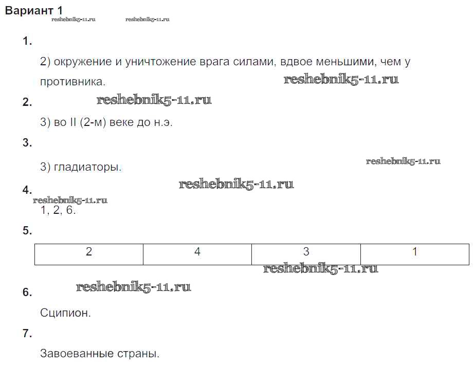 Готовая домашняя работа с ответами по Истории за 5 класс Крючкова Проверочные и контрольные работы Просвещение 2015 ФГОС - Итоговая контрольная работа к главе Рим - сильнейшая держава Средиземноморья Вариант №1
