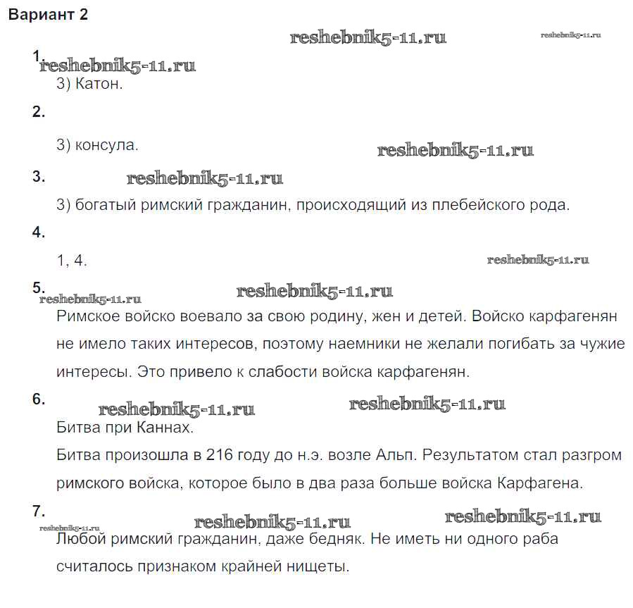 Готовая домашняя работа с ответами по Истории за 5 класс Крючкова Проверочные и контрольные работы Просвещение 2015 ФГОС - Итоговая контрольная работа к главе Рим - сильнейшая держава Средиземноморья Вариант №2